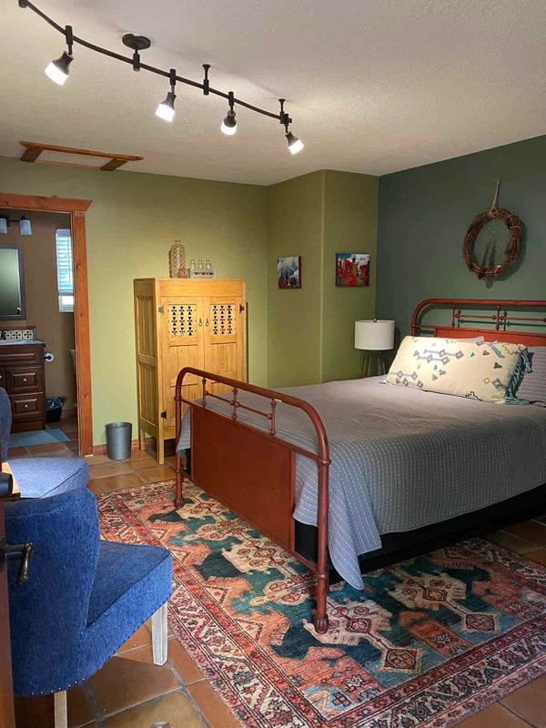 For the Drawing Retreat we reserve the entire property at the Cañon del Rio Inn and Spa, located just outside the village of Jemez Springs. Each private bedroom has a bathroom with shower or tub and opens on to a covered patio with portable studio furnishings. There are comfortable common rooms, shaded poolside terraces, a sparkling clean hottub, pool, and walking paths to the Jemez River. There is ample space to explore, draw, read, and simply consider the light moving across the mesa.